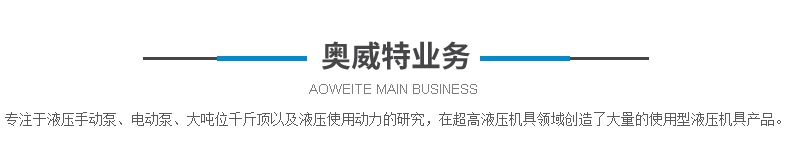 德州奧威特液壓機(jī)械有限公司有多年的超高壓元件及設(shè)備制造經(jīng)驗(yàn),依托德州精湛的制造工藝和不斷創(chuàng)新的技術(shù),專注于液壓手動(dòng)泵、電動(dòng)泵、大噸位千斤頂及拆裝科技以及液壓使用動(dòng)力的研究,在超高液壓機(jī)具領(lǐng)域不斷研發(fā),創(chuàng)造了大量的使用型液壓機(jī)具產(chǎn)品。
